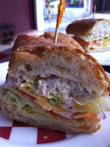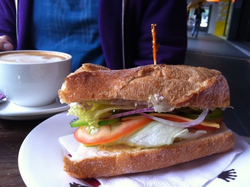 吃我最愛的鮪魚三明治(雜糧、法國麵包都好吃)